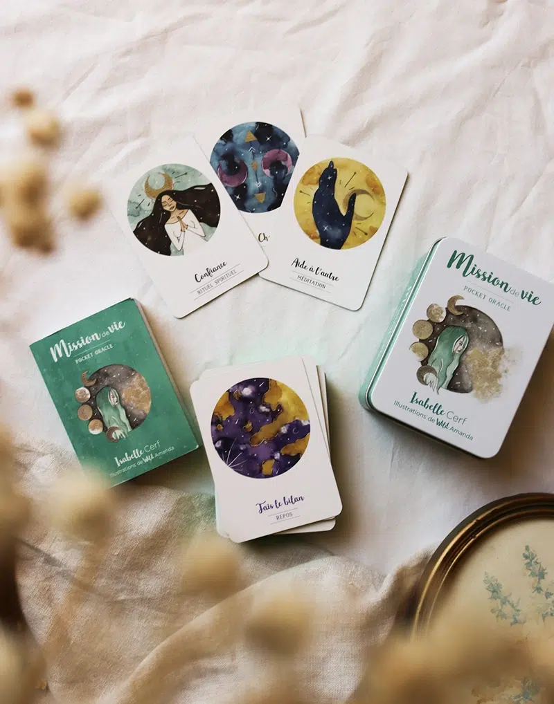 Le coffret Mission de vie avec les extensions, dans une version pocket avec boîte en métal.