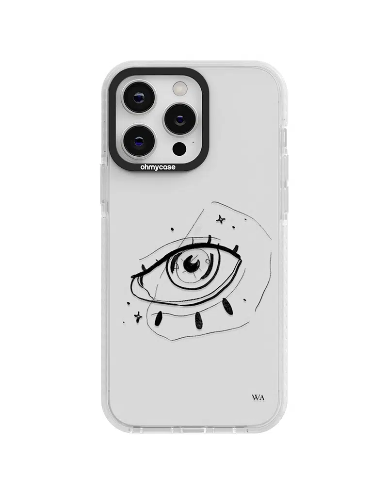 Une coque avec mon illustration “Ton regard” au trait noir, minimaliste et expressive, mettant en lumière la force et la profondeur d’un regard 👁️🗨️